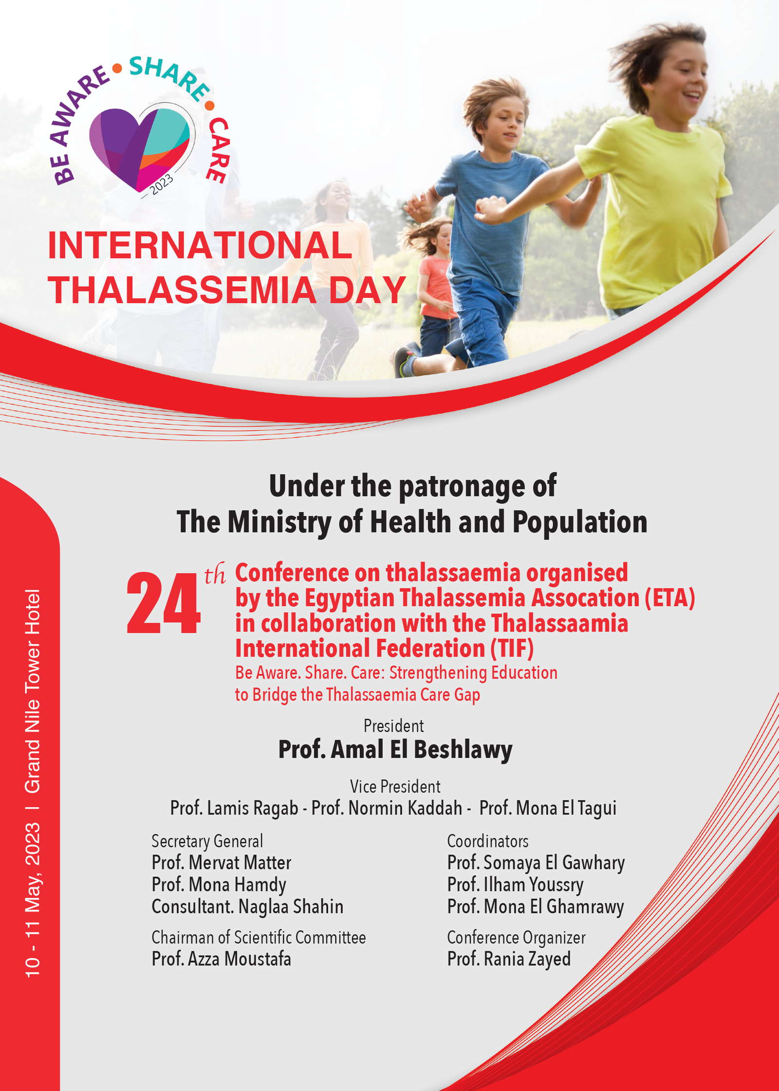 The Egyptian Thalassemia Association was established in 1990 to deliver quality comprehensive care to the growing number of thalassemia patients in the Egypt. The Association foresters a comprehensive program designed to provide primary and tertiary care along with education, outreach, genetic counseling, and psychosocial care to patients, their families and those at risk for carrying the disease. Help in creating Thalassemia centers in Cairo and other Egyptian Governorates. Member of the TIF in 1992. Members are the medical staff of our center together with doctors and professor from other Egyptian centers – patients and their parents – VIP persons. Chairman is Prof. Amal El-Beshlawy.